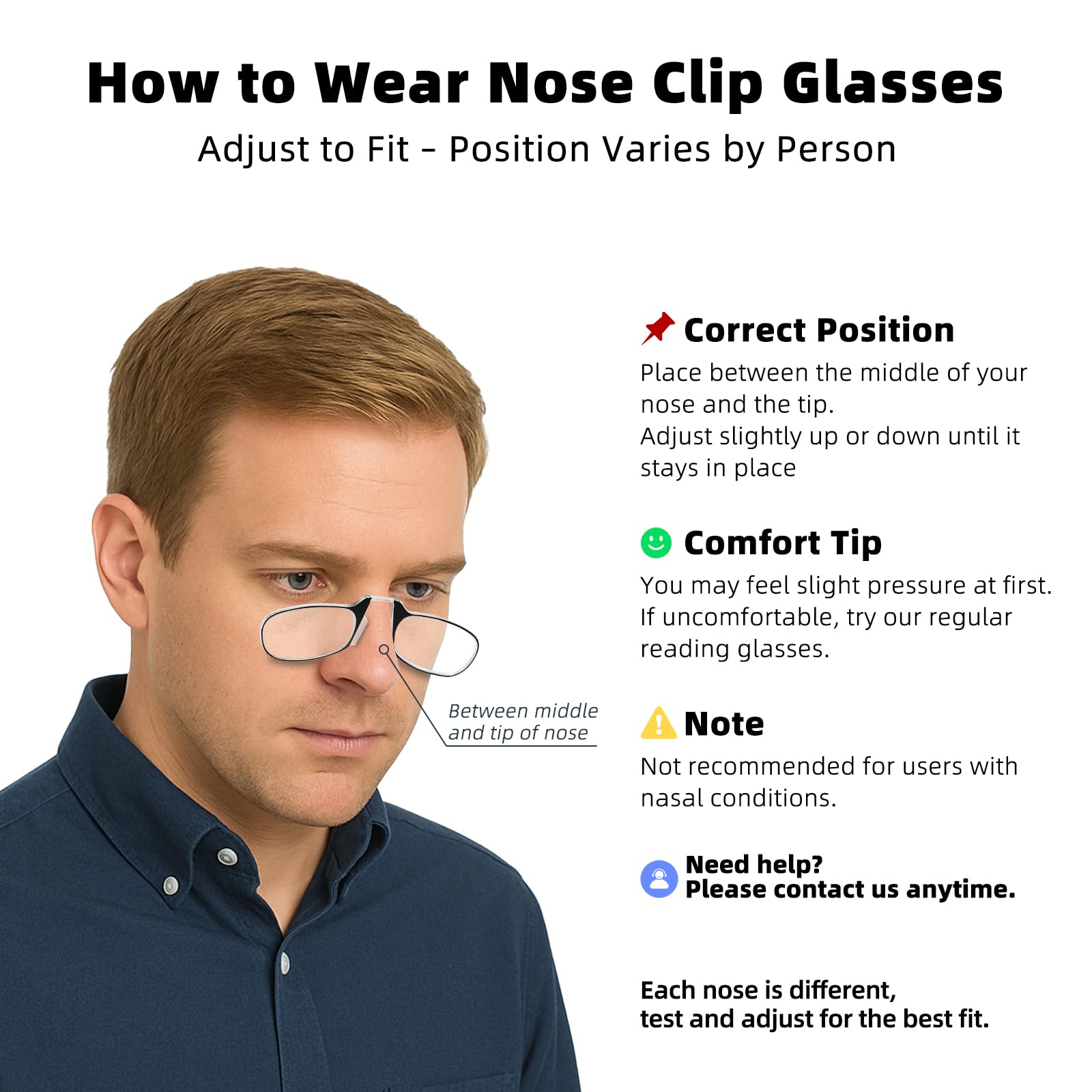 Pinching and slipping are common problems with nose-sitting glasses. Our patented design provides a gentle, secure grip, making them so light and comfortable you will barely notice they are there.