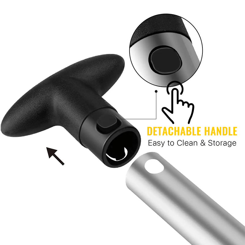 The non-slip ergonomic handle gives you total control, while the quick-release button makes cleanup a breeze. Just press to separate the shaft and knob, and you're done. It’s the kitchen tool you’ll reach for again and again.