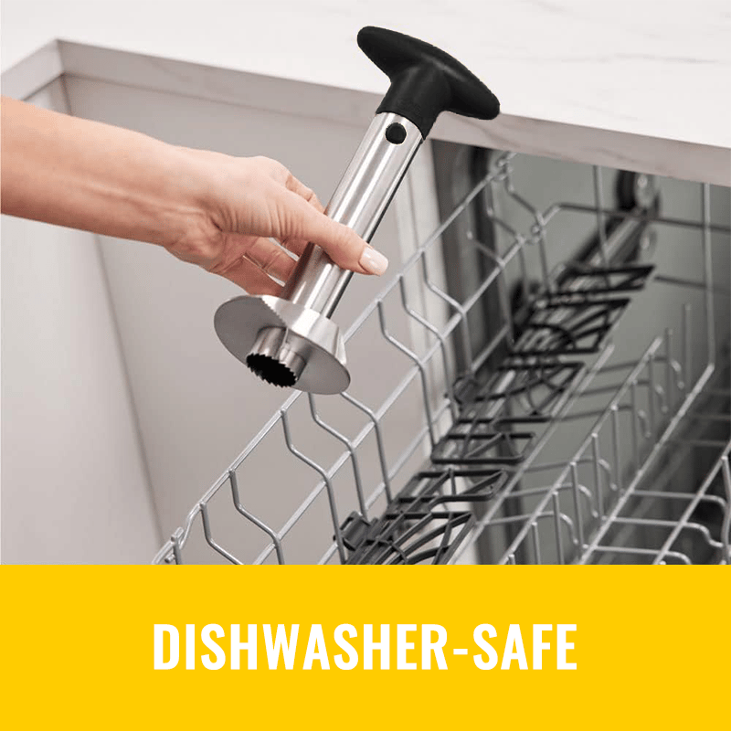 Made from durable stainless steel, this corer resists rust, stays sharp, and slices cleanly every time. It’s tough enough to handle even the juiciest pineapples and dishwasher-safe for effortless cleanup.